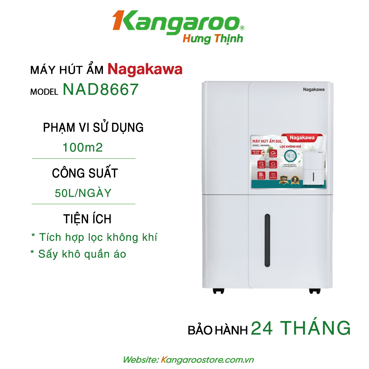 MÁY HÚT ẨM LỌC KHÔNG KHÍ 50L NAGAKAWA NAD8667 – SỨC MẠNH VƯỢT TRỘI CHO KHÔNG GIAN RỘNG LỚN
