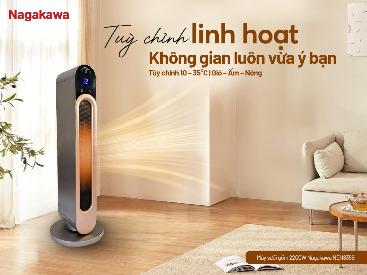 Một mái ấm đúng nghĩa không chỉ là nơi che chở, mà còn là nơi cả gia đình tìm thấy sự an yên trong từng khoảnh khắc sum vầy. Thế nhưng, giá lạnh mùa đông nhiều khi khiến bữa cơm kém trọn vẹn, giấc ngủ chập chờn, và tình thương phải nhường chỗ cho lo toan sức khỏe. Máy sưởi gốm 2200W Nagakawa NEH8399 được ra đời để mang lại hơi ấm an toàn và tinh tế, giữ cho hạnh phúc gia đình bạn luôn trọn vẹn qua từng mùa lạnh.